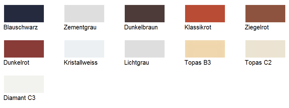 werden in den nachstehenden Farben gefertigt: